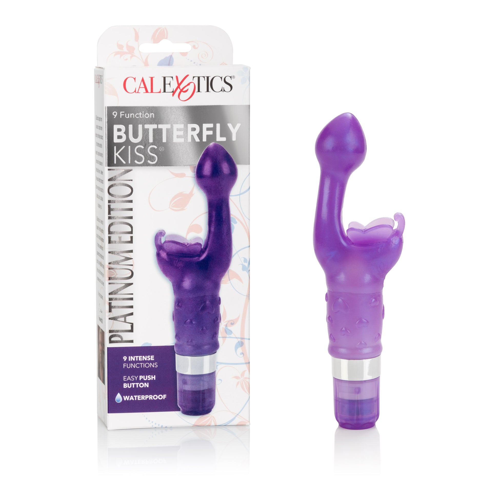 Tantalize your intimate pleasure spots with the Platinum Edition Butterfly Kiss. The discreet feminine arouser boasts 9 intense vibration, pulsation, and escalation functions that simultaneously arouse, please and tease the G-spot and clitoris. For ultimate sensual fun, use the curvey, waterproof arouser in and out of the water.